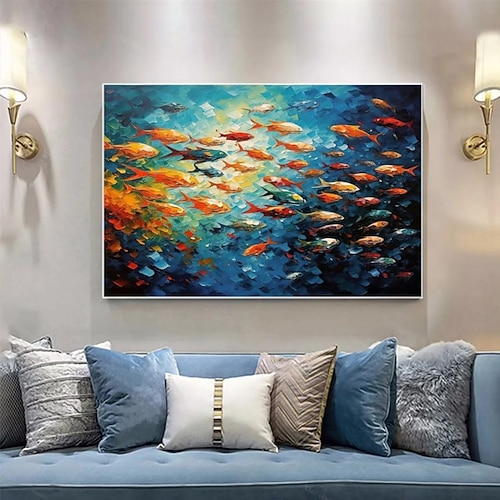 dipinto a olio fatto a mano su tela decorazione artistica da parete moderna astratta pesce marino paesaggio per la casa soggiorno arredamento dipinto arrotolato senza cornice non allungato