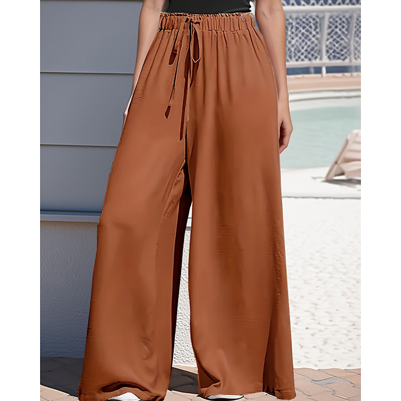 Women's Wide Leg Chinos Vacation Fashion Streetwear Full Length High Waist Plain Pocket Elastic Waistband Comfy Comfort Soft Stretchy Outdoor Street Blue Army Green Black Coffee Summer Spring Fall