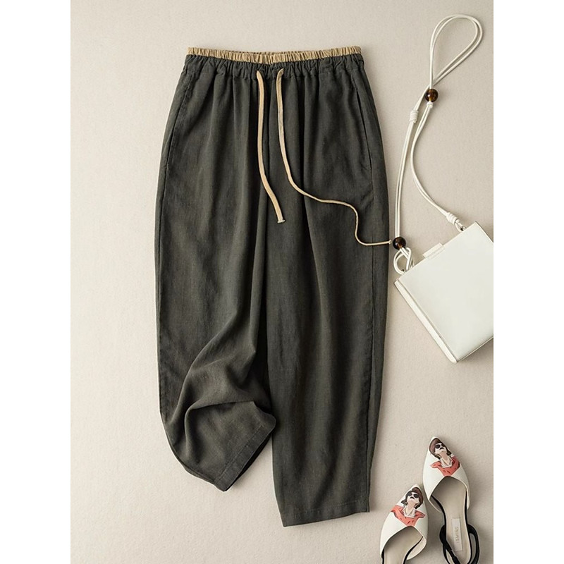 Men's Linen Pants Trousers Summer Pants Baggy Pants Beach Pants Elastic Waist Drawstring Straight Leg Plain Comfort Breathable Full Length Outdoor Holiday Beach Vacation Fashion White Army Green
