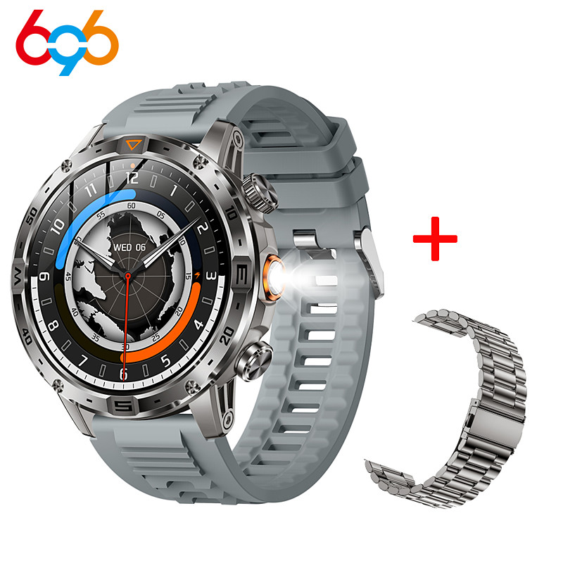 Military outdoor sturdy men's smart watch LED flashlight 1000 mAh battery standby for 100 days 1.7 inch AMOLED display GPS track