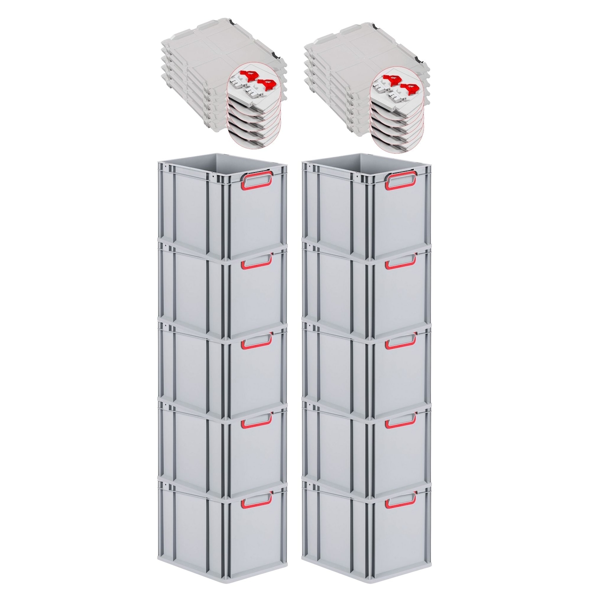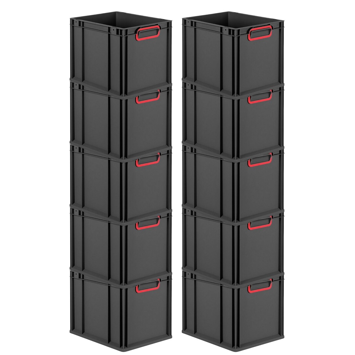 PROREGAL 10x Eurobox NextGen Color | HxBxT 17x40x60cm | 34 Liter | Griffe rot offen | Glatter Boden | Eurobehälter