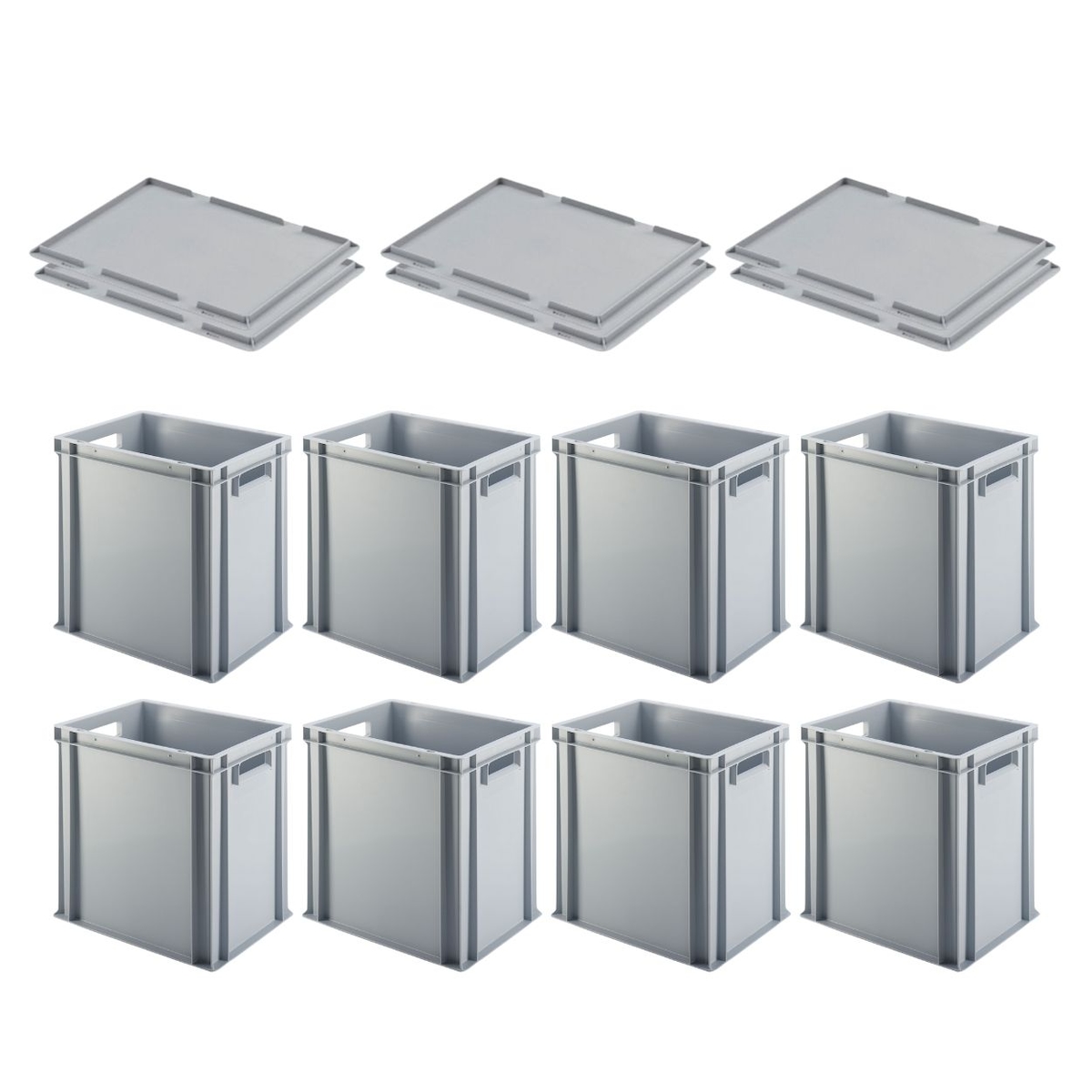 PROREGAL SparSet 5x Eurobox NextGen Color, HxBxT 32x30x40cm, 30 Liter, Griffe schwarz zu, Grau, Eurobehälter, Transportbehälter