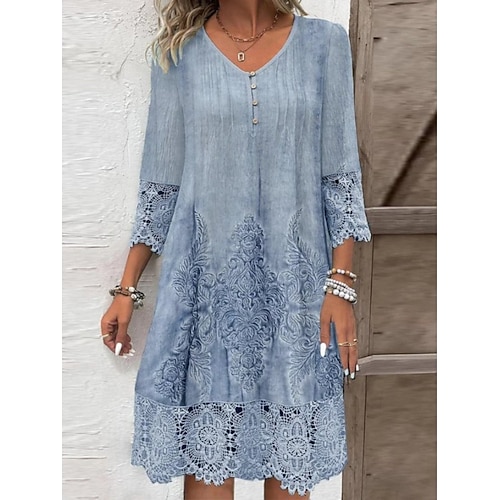 Per donna Mini Abito Abito a Tubino Casual Quotidiano Vestibilità regolare Semplice Manica 3/4 Scollo a V Blu Cammello Verde Primavera Autunno
