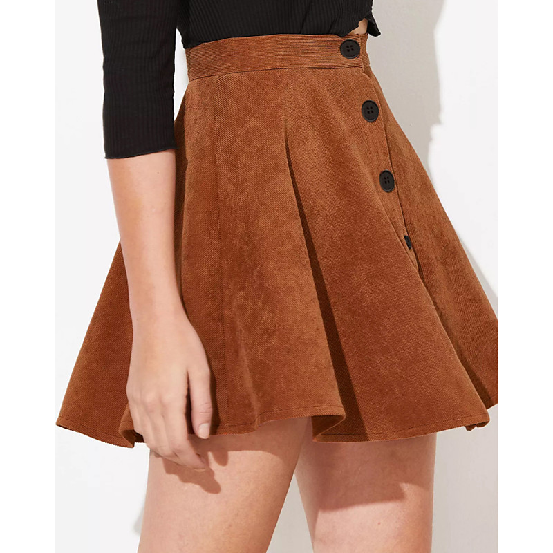 Women's Skirt Casual Mini Mid Rise Skirts Plain Ruched Pleated Inelastic Street Going out Brown Summer Spandex Corduroy