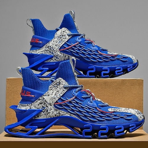 Blaue futuristische Laufsneaker für Herren mit Mesh-Obermaterial und stoßdämpfender Sohle, leichte Sportschuhe für Sport, Fitnessstudio und Streetwear-Mode