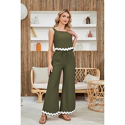Damen-Tank-Top-Hose, gewellter Saum, lässiger Mode-Anzug