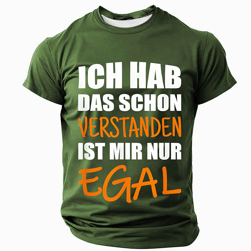 Men's Sarcastic Graphic T-Shirt - Funny German Quote 'Ich Hab Das Schon Verstanden Ist Mir Nur Egal' I Understood I Just Don't Care