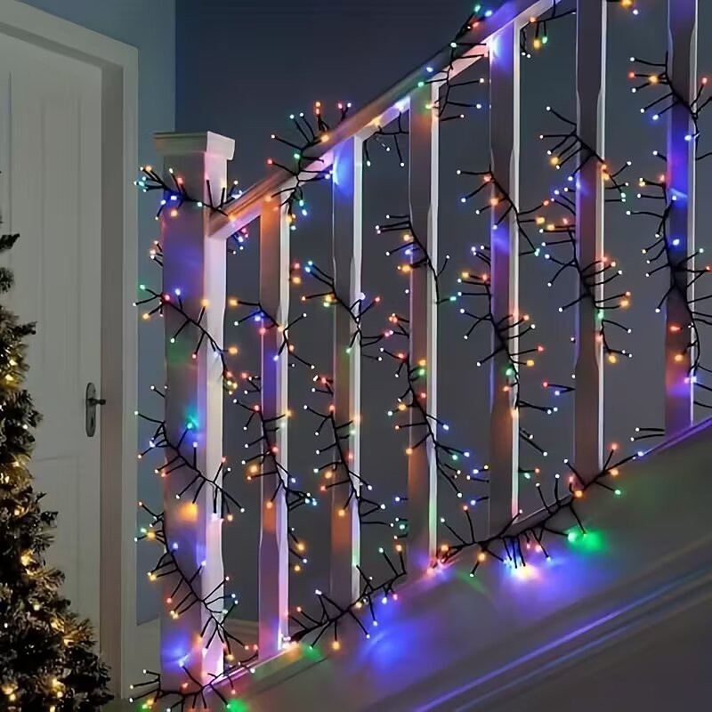 LED Twinkling Tree Lights Outdoor 10M 500LED Cluster Fairy Lights Warm White Firecracker String Lights 8 Twinkle Modes In Decorative Garland Light for Home Holiday Lighting DC31V EU US