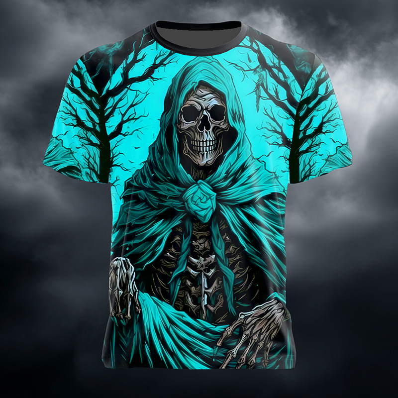 Men's Grim Reaper 3D Reaper T Shirt Short Sleeve T shirt 3D Print Crew Neck Shirt Exaggerated Designer Horror Party Street Holiday Blue Green Summer Spring All Seasons Clothing Apparel S M L XL XXL