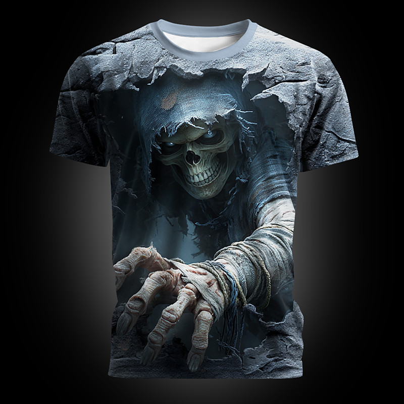 Men's Skull 3D Reaper T Shirt Short Sleeve T shirt 3D Print Crew Neck Shirt Exaggerated Designer Horror Party Street Holiday Black 1 Black Gray Summer Spring All Seasons Clothing Apparel S M L XL XXL