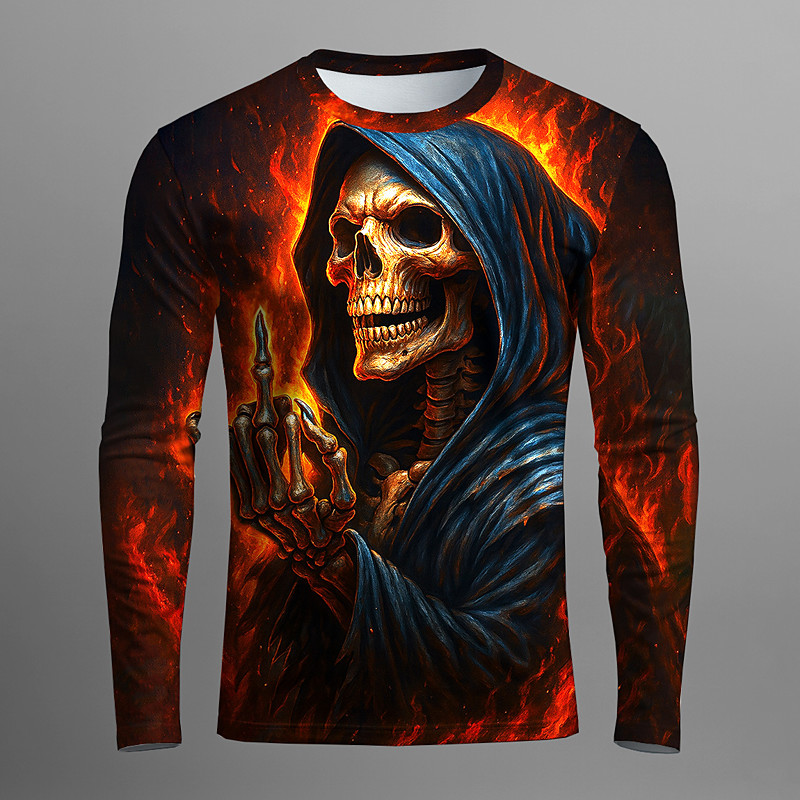 Men's Grim Reaper Skeleton T Shirt Long Sleeve T shirt 3D Print Crew Neck Shirt Fashion Exaggerated Street Casual Daily Yellow Green Dark Blue Summer Spring Fall Clothing Apparel S M L XL XXL XXXL