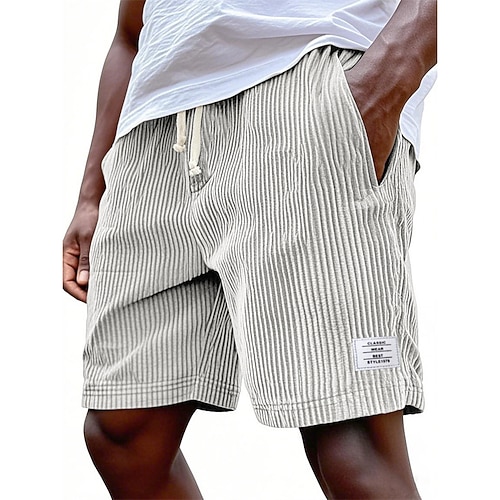Per uomo Pantaloncini Estivi Shorts da Spiaggia Pantaloncini casual Pantaloncini di velluto a coste Coulisse Elastico in vita Tinta unica Comodità Traspirante Lunghezza al ginocchio Quotidiano
