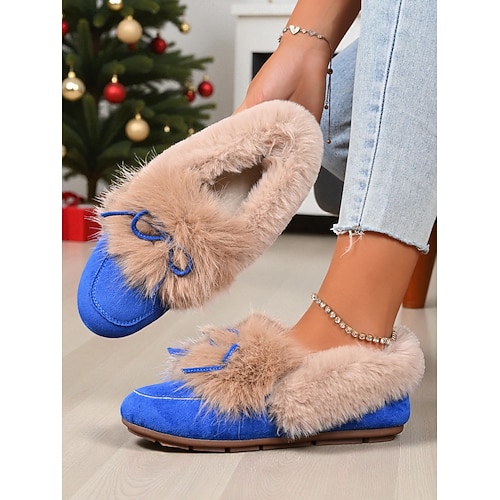 Per donna Mocassini Mocassini classici Scarpe morbide Scarpe Comode Natale Quotidiano Fiocco Tacco basso Punta Tonda Casual Comfort Pelliccia Sintetica Finta pelle scamosciata Mocassino Rosso