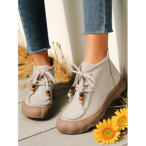 scarpe comode da donna in vera pelle con lacci – suola morbida e flessibile, stile casual retrò, ideali per l'uso quotidiano, passeggiate, viaggi e attività all'aperto