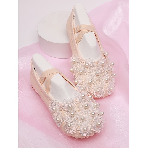 scarpe da ballo da donna in raso con decorazioni in pizzo e perle - suola morbida e flessibile, eleganti pantofole da ballo per bambini adulti, ideale per l'allenamento quotidiano prove di