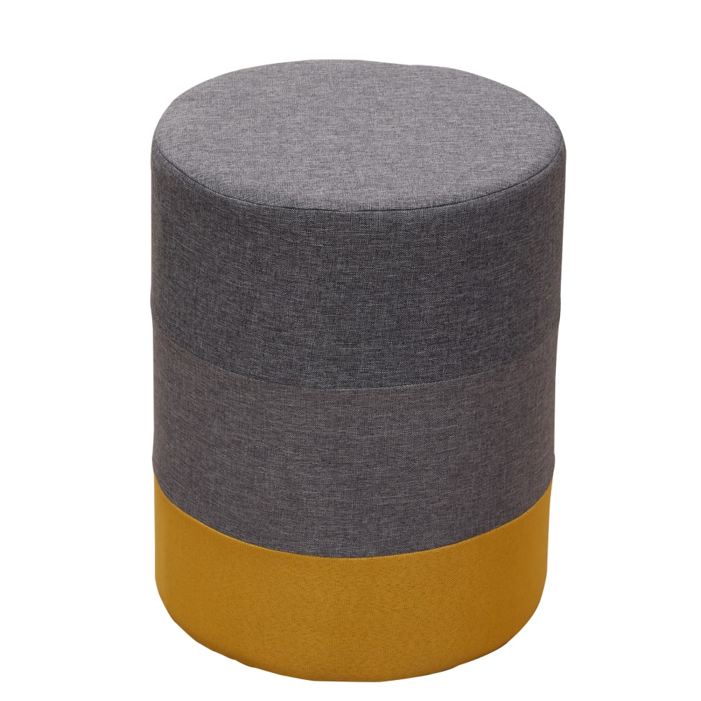 Pouf poggiapiedi in tessuto e fibra di legno grigio e giallo