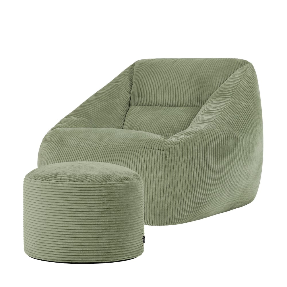 Pouf poltrona poggiapiedi rotondo in velluto a coste verde salvia