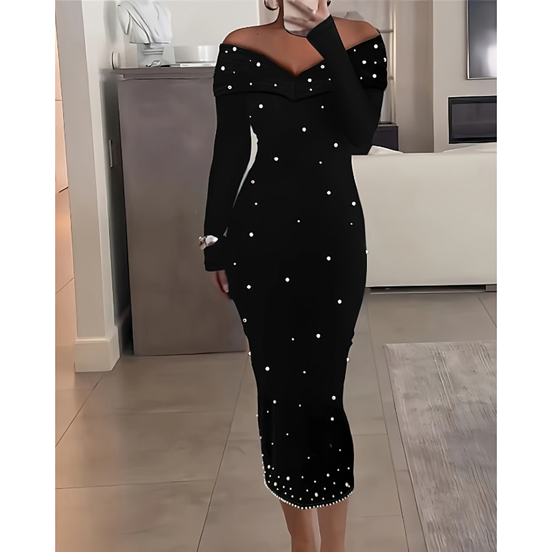 Women's Midi Dress Prom Dress Party Dress Cocktail Dress Sheath Dress Elegant Fashion Evening Party Party Special Occasion Loose Fit Plain Long Sleeve Off Shoulder Black Red Summer Spring