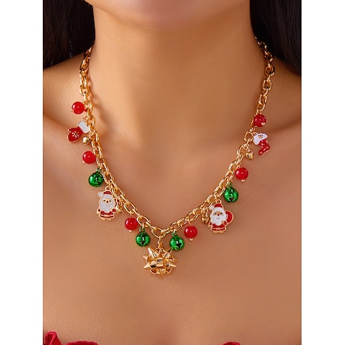 collana con ciondolo natalizio da donna, vari stili con ciondoli a forma di Babbo Natale, pupazzo di neve e albero di Natale, perfetti per feste e regali festivi