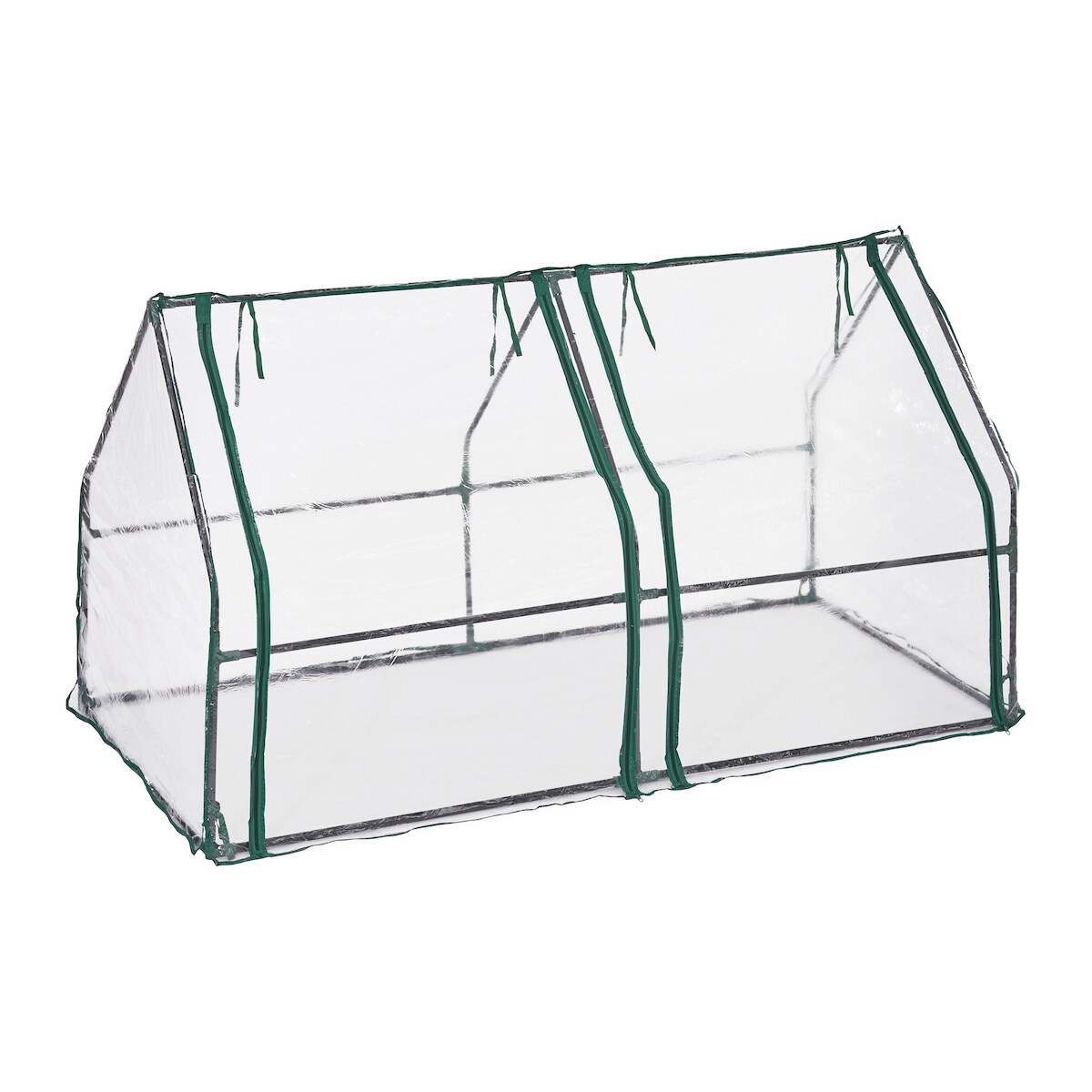 Relaxdays Folienfrühbeet, HxBxT: 90 x 180 x 90 cm, 2 Türen, Spitzdach, Frühbeet, Aufzucht, Gewächshaus, PVC, transparent