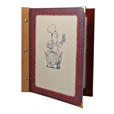 DECOR SERVICE Folienkarte (PVC) weinrot, mit Holzrücken, 6 Seiten, A5, 1 Stk.