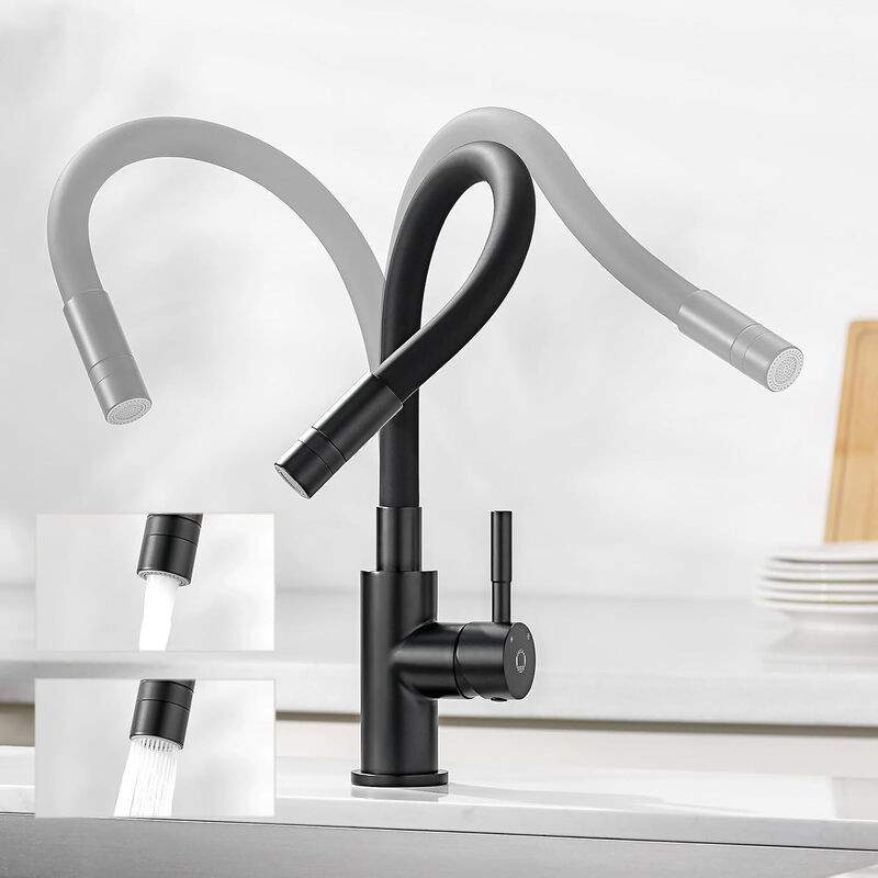 Robinet de Cuisine Flexible CECIPA max, Noir, 2 Modes de Jet, Mitigeur Monocommande, Pliable, Eau Chaude et Froide, Rotation 360°