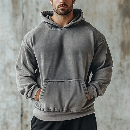 Per uomo Maglia Felpa con cappuccio invecchiata Aalbicocca Nero Rosa Verde militare Marrone Girocollo Semplice Quotidiano Ferie Uscire 100% Cotone Vintage Retrò Casual Autunno Inverno Abbigliamento