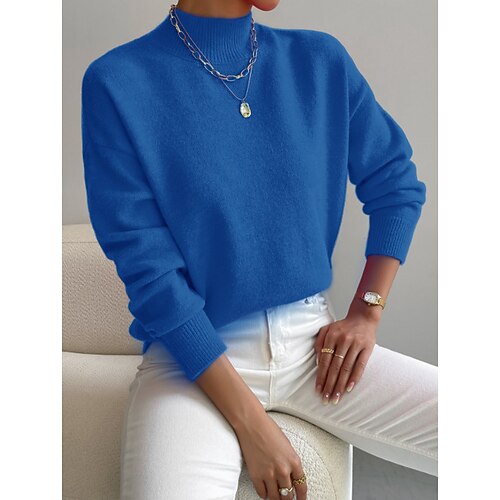 Per donna Felpa Maglione Elegante Vintage Moda Tinta unica A Coste Dolcevita Lavorato a maglia Manica Lunga Top Regolari Maglia Scuola All'aperto Casa Rosa Verde militare Primavera Autunno