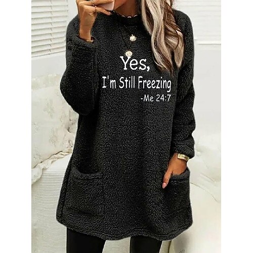 Per donna Felpa Pullover Lettera Casual Manica Lunga Girocollo Top lunghi Streetwear Abbigliamento Quotidiano Tasca Stampato Blu Nero Bianco Rosa Verde militare Autunno Inverno