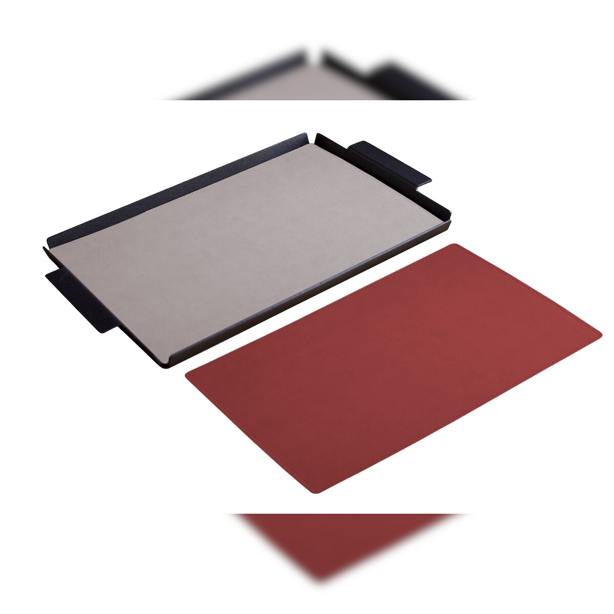 Stil Casa, 6er-Set Serviertabletts, schwarz lackiertes Aluminium, Deckel aus genähtem, laminiertem Polyurethan, 35x45xh0,2 cm, Farbe Bordeaux/Rosa.