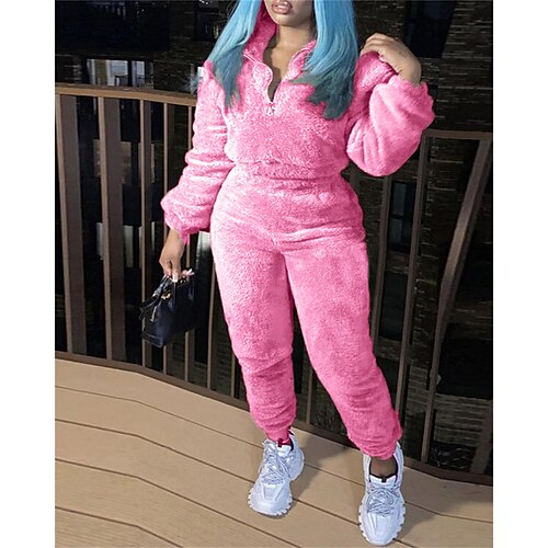 Per donna Abbigliamento da Casa Tutina Caldo Moda Sexy Colore Puro Cerniera Pantalone Vacanza Casa Streetwear Manica Lunga Collo Alto Blu Nero Rosa Cammello Beige Autunno Inverno Vestibilità regolare