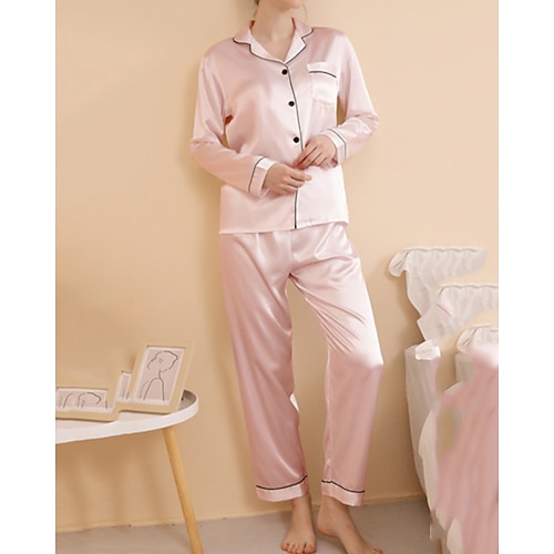Per donna Pigiama Abbigliamento da Casa Set Pigiama Casual Morbido Raso Colore Puro Bottoni Pantalone Quotidiano Casa Da letto Manica Lunga Colletto a Camicia Blu Rosa chiaro Nero Champagne Rosa
