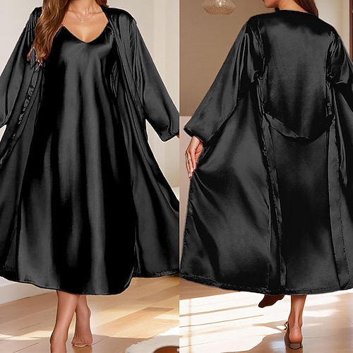 Per donna Abbigliamento da Casa Accappatoio Camicia da Notte Moda Casual Morbido Colore Puro Patchwork Vestiti Casa Vacanza Manica Lunga Scollo a V Nero Champagne Rosa Vino Verde Estate Primavera
