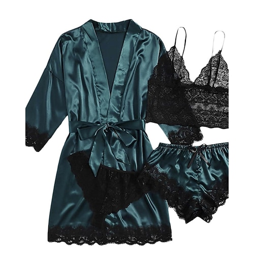 Per donna Abbigliamento da Casa Accappatoio Casual Morbido Raso Patchwork Allacciato Quotidiano Casa Da letto Manica Lunga Scollo a V Nero Champagne Rosa Rosso Estate Vestibilità regolare