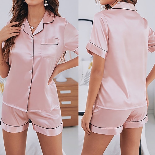 Per donna Abbigliamento da Casa Set Pigiama Moda Casual Morbido Colore Puro Patchwork Elastico in vita Bottoni Shorts Casa Vacanza Manica Corta Bavero Rosa chiaro Nero Bianco Champagne Rosa Estate