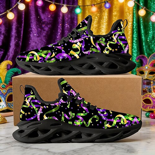 Sneakers atletiche con stampa di coriandoli per donne di Carnevale - Scarpe festive con suola ammortizzata per sfilate di Carnevale celebrazioni di strada commissioni quotidiane e attività estive