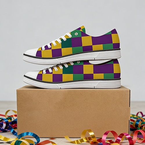 Sneaker da uomo in tessuto con stampa a nastro di carnevale scarpe classiche basse casual in tela per Mardi Gras festival di strada sfilate viaggi e uso quotidiano