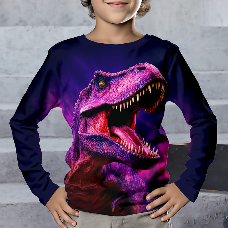 Boys 3D Dinosaur Tee Long Sleeve 3D Print Fall Winter Sports Fashion Streetwear Kids 3-12 Years Crew Neck Outdoor Casual Daily Regular Fit