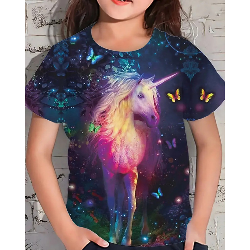 Girls' 3D Graphic Unicorn T shirt Tee Short Sleeve Summer Spring Fashion Basic Kids 4-12 Years Crew Neck Casual Daily Outdoor Regular Fit