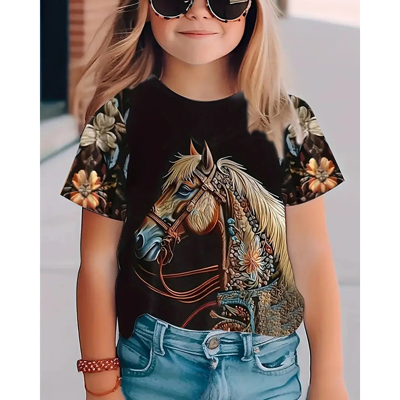 Girls' 3D Graphic Horse T shirt Tee Short Sleeve Summer Spring Fashion Basic Kids 4-12 Years Crew Neck Casual Daily Outdoor Regular Fit