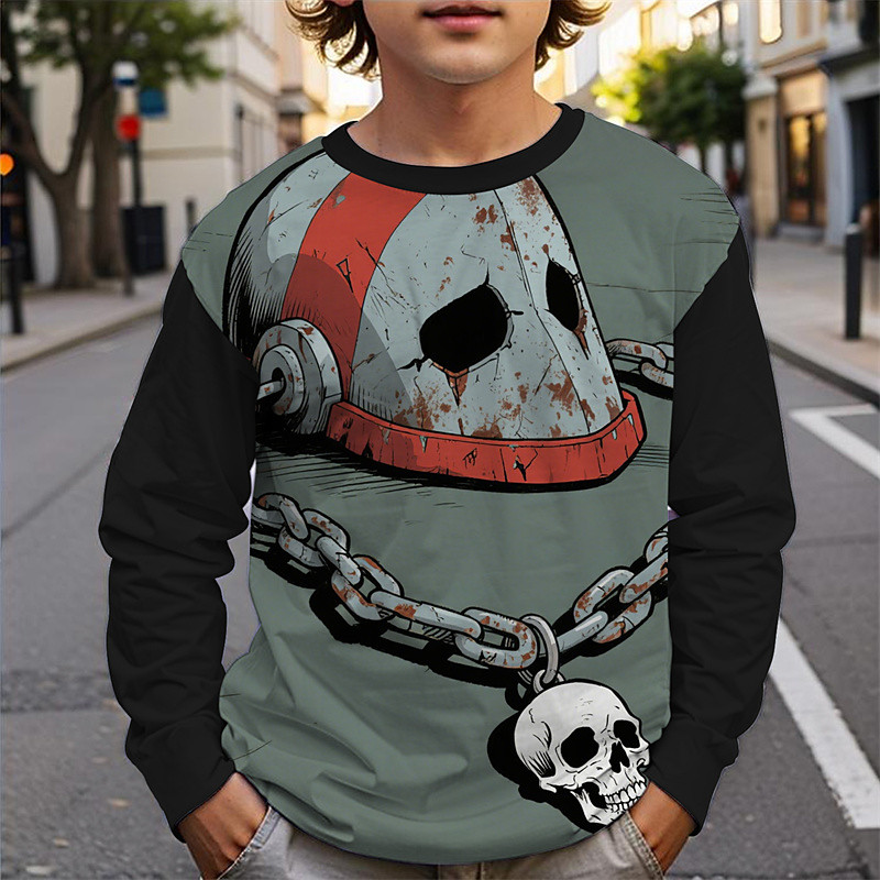 Halloween Boys' 3D Skull Sweatshirt Long Sleeve Spring Fall Fashion Basic Kids 4-12 Years Crew Neck Outdoor Casual Daily Regular Fit