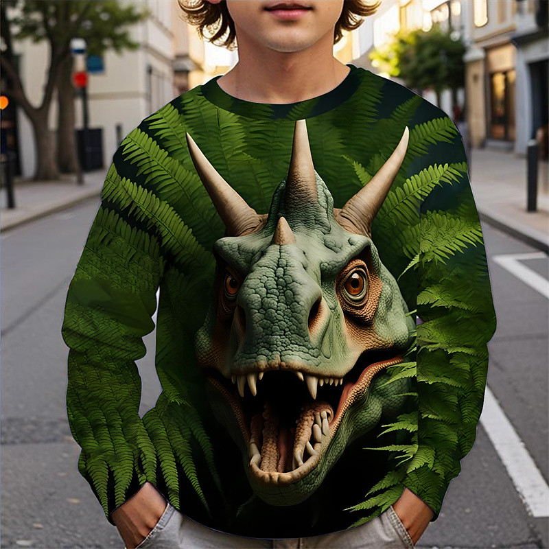 Boys' 3D Dinosaur Sweatshirt Long Sleeve Spring Fall Fashion Basic Kids 4-12 Years Crew Neck Outdoor Casual Daily Regular Fit