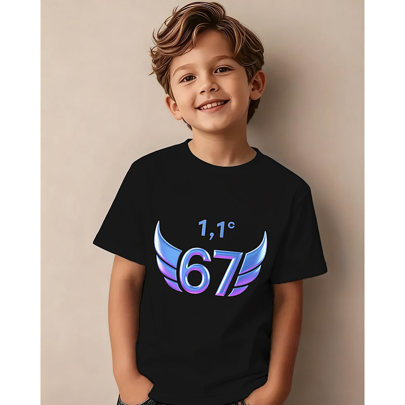 Cotton Kids Boys' Black Graphic Wings Funny Slang 67 T shirt Blouse Crew Neck Short Sleeve Outdoor Dailywear Fashion Streetwear Designer Printing Summer