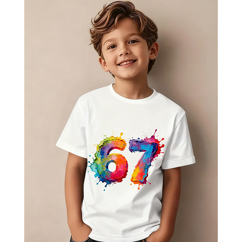 Cotton Kids Boys' Black White Graphic Funny Slang 67 T shirt Blouse Crew Neck Short Sleeve Outdoor Dailywear Fashion Streetwear Designer Printing Summer