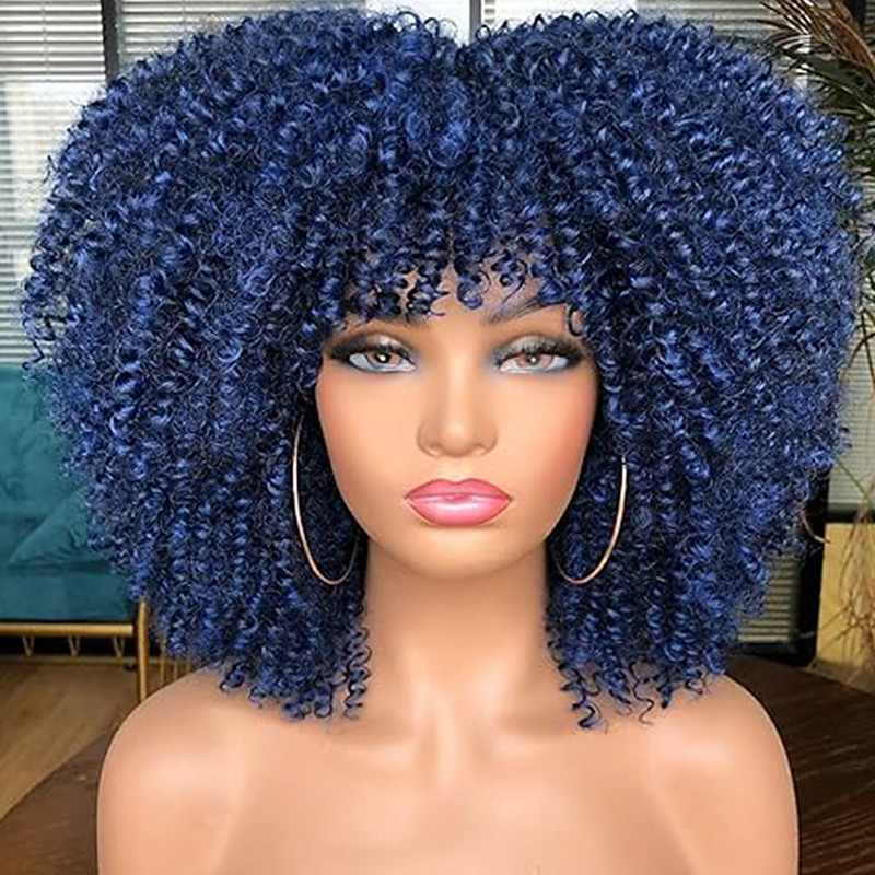 Short Curly Wigs for Black Women Human Hair Afro Kinky Curly Wig Brazilian Virgin Pixie Cut Wig Human Hair With Bangs 150% Density None Lace Front Bob Wigs