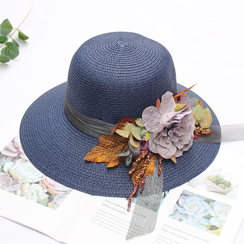 berretto Copricapo Cappelli di paglia Paglia Cappelli da pescatore Cappello di paglia Cappello da sole Informale Per eventi Spiaggia Kentucky Derby Coppa di Melbourne Stile vintage Elegante Con Con