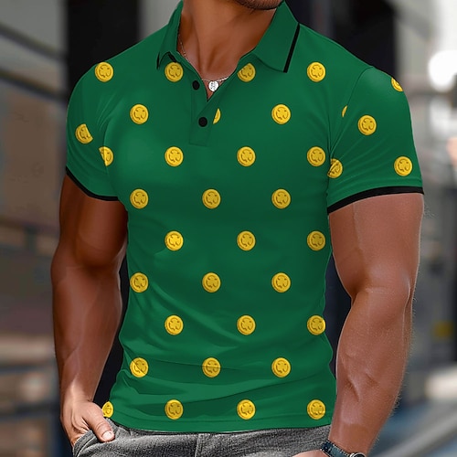 Giorno di San Patrizio Per uomo Trifoglio Soldi Polo Manica Corta Magliette polo Camicie con Colletto Casual Athleisure Abito da festa Bottoni Estate Primavera Verde