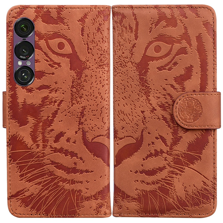 Sony Xperia 1 VII Konstläder Plånboksfodral Tiger Print - Brun