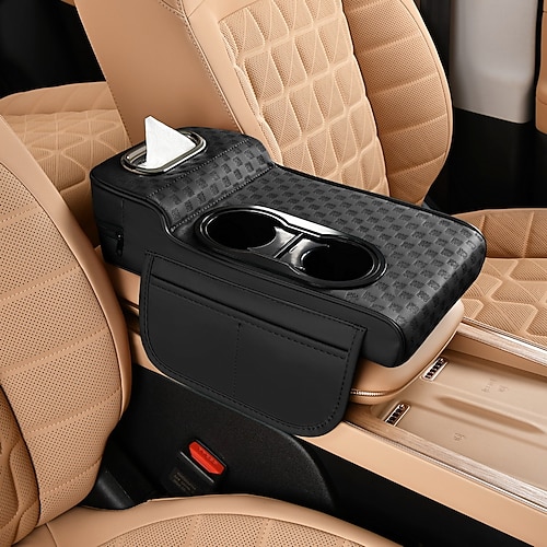 Organizer 5 in 1 per console centrale auto con supporto migliorato per i gomiti: copribracciolo in similpelle, portabicchieri tasche portaoggetti, misura universale per la maggior parte dei veicoli