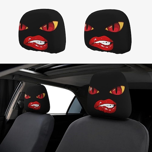 2 copri poggiatesta per auto con stampa di labbra divertenti, cuscino per il collo e cuscino di supporto lombare, morbidi e soffici, adatti per tutte le stagioni, adatti per la guida a lunga distanza,